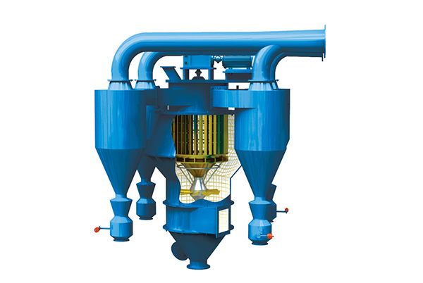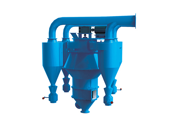 ZH系列組合式選粉機是利用水平渦流原理進行分極的第四代高效選粉機,是我公司在引進國外先進技術的基礎上結合我國的使用的生產實踐,改進和完善后的新型粉體分級設備。 工作原理 選粉機出風彎管接收塵器的進風口,由于收塵器風機的抽風作用,空氣經選粉機一、二次風口被吸入選粉渦流殼內,在導風葉的導流和轉子的旋轉及固定緩沖板的作用下,在導風葉和轉子之間形成穩定的環形水平渦流選粉區。粉磨后的物料從選粉機進口喂入,通過旋轉的撒料盤均勻撒向四周,因擋料圈的阻擋作用,物料在分散狀態下撒落在導風葉和轉子之間的選粉機。在選粉渦流中運動的粉塵顆粒將同時受重力、風力和旋轉離心力的作用,細小輕微的顆粒隨氣流被吸入轉子內部,經出風口由收塵器收集成為成品,粗重顆粒則下落,終被收集到下錐體的粗粉出口,返回到磨機再磨,從而形成閉路系統。改變轉子轉速可有效調節成品細度。 ![]()